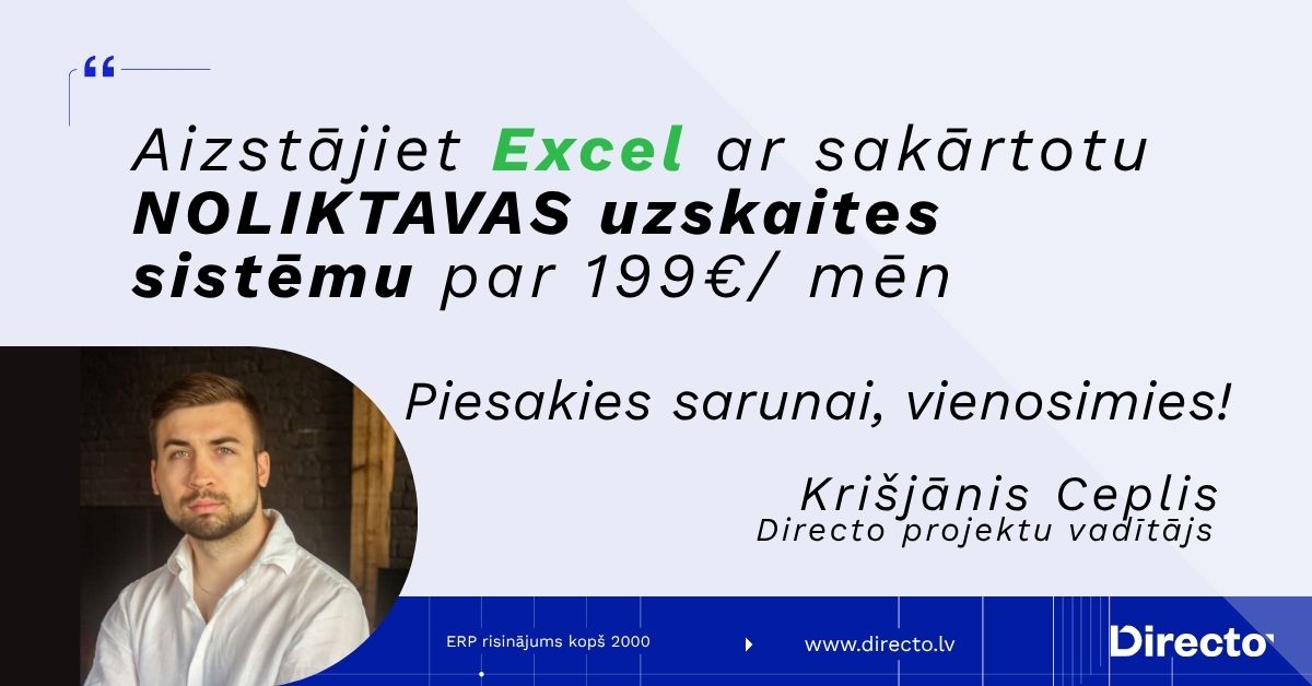 “Ar Directo ERP ieviešam noliktavas uzskaiti, kas sniedz rezultātu uzreiz. Izstrādājam datu plūsmu, nodrošinām integrācijas un samazinām manuālo darbu.